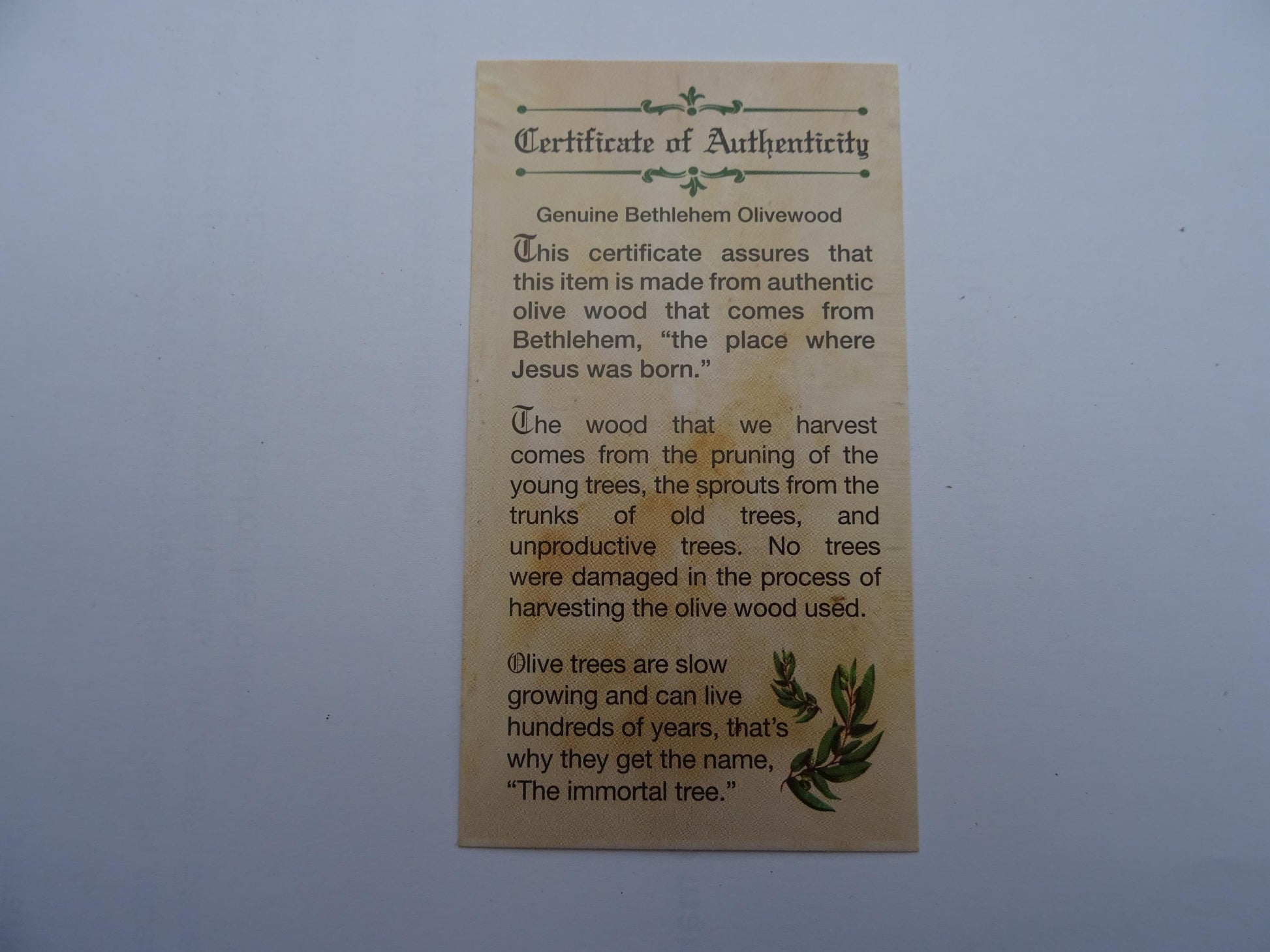 - Handcrafted from certified Bethlehem Holy Land olive wood