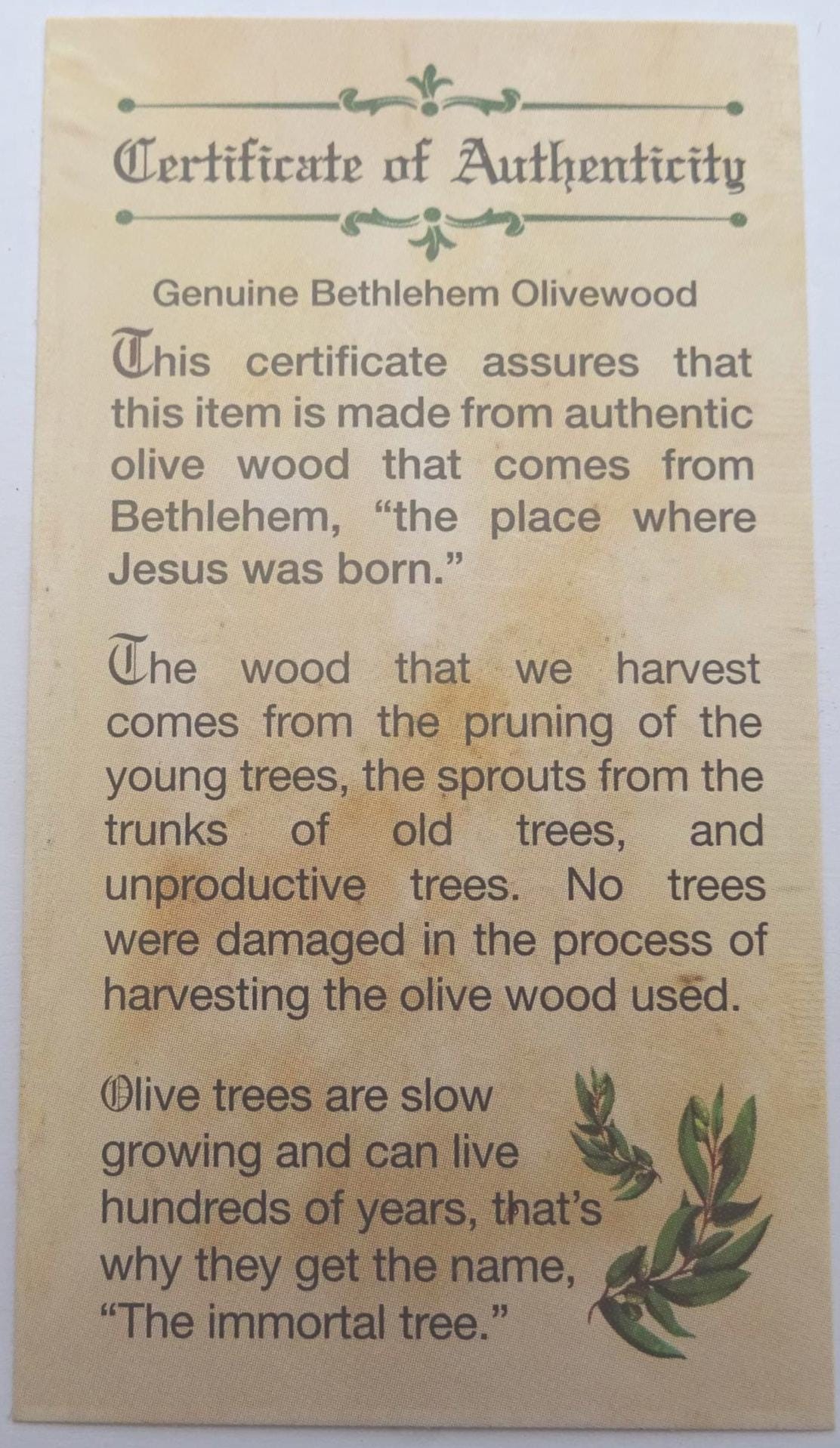 Olive wood is graded by the grain. This pen is made from premium grade which has full grain throughout. The beauty of this precious wood lies in the fact that no trees were felled or cut down during its production. Every October, the branches of this protected tree are pruned and sold to local Bethlehem craftsmen, who use them to create stunning items. In general, olive trees are very long-lived, and a number of specimens are considered among the oldest known trees in the world. However, because the trunks of mature olive trees tend to become hollow over time, exact dating can be problematic. Carbon dating and surrounding archeological evidence is sometimes used to estimate a tree’s age, and reports of the oldest olive trees in the Mediterranean region range anywhere from several hundred to even thousands of years old—with many still bearing fruit. An Olive tree located within the Al-Walaja village in Bethlehem is estimated to be around 5,000 years old. It extends over 250 sq m, stretches to around 13 metres in height, and its roots extend some 25 meters into the earth.